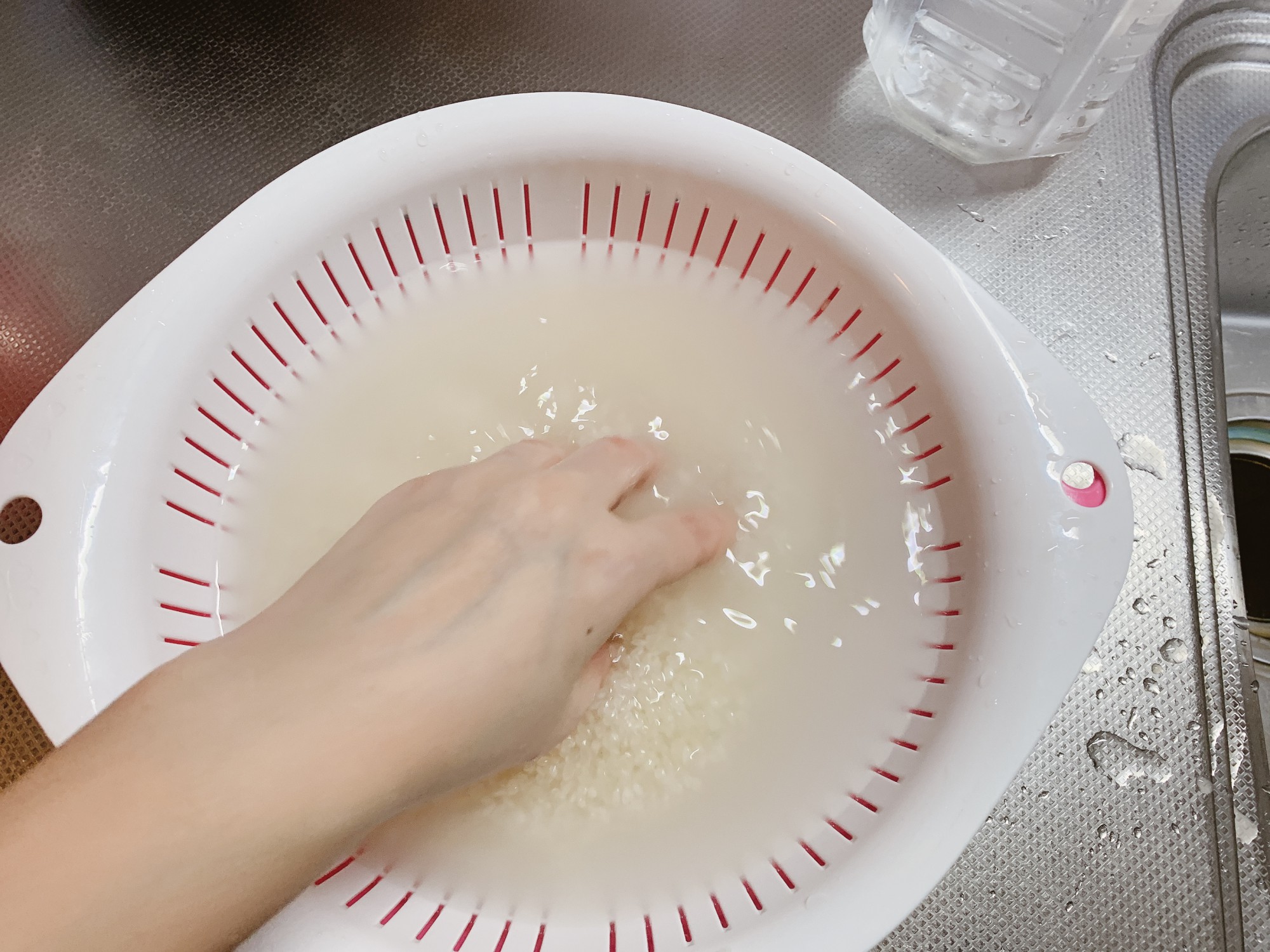 …上でご紹介したようにお米を研ぐ際の最初のお水にはミネラルウォーターがおすすめです。最初に水に触れた時が最も水を吸収しますので、水の中へお米を入れる方が望ましいです。お米から不純物やニオイが出てきますので10秒程度でサッと洗い流しましょう。